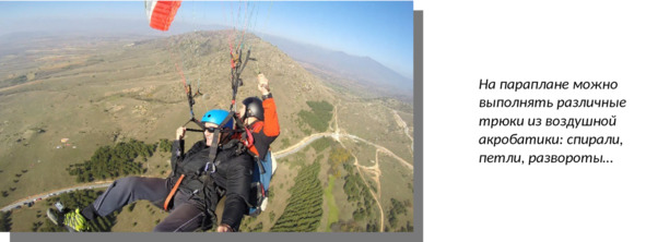 • Максимальная скорость параплана – 70 км/ч.