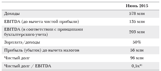 Наконец, финансовые показатели отражают устойчивую экономическую модель. «Устойчивая модель» подразумевает, что она работает по принципу самоокупаемости и не требует постоянных вложений или чрезмерных кредитов для функционирования. В 2015 финансовом году, который закончился в июне 2015, доходы «Реал Мадрид» составили 578 миллионов евро (641 миллион долларов). Показатель «EBITDA» (прибыль до вычета процентов, налогов, износа и амортизации), простой прокси-сервер для денежного потока, был 203 миллиона евро (221 миллион долларов). Чистый долг «Реал Мадрид» составлял 96 миллионов евро (106 миллионов долларов). Отношение чистого долга к «EBITDA» является очень надежным показателем финансовой устойчивости компании. Для «Реал Мадрид» оно равнялось 0,47. Эта цифра более благоприятна, чем средние показатели крупных компаний в «S&P 500» (кроме финансовых учреждений), для которых средний показатель – 1,36.[40]