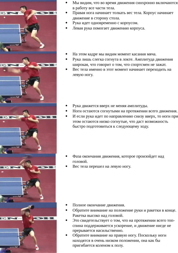 То есть топ-спин справа с подрезки требует значительно большего усилия, чем топ-спин по блоку. Более широкое движение необходимо именно для того, чтобы обеспечить это усилие.