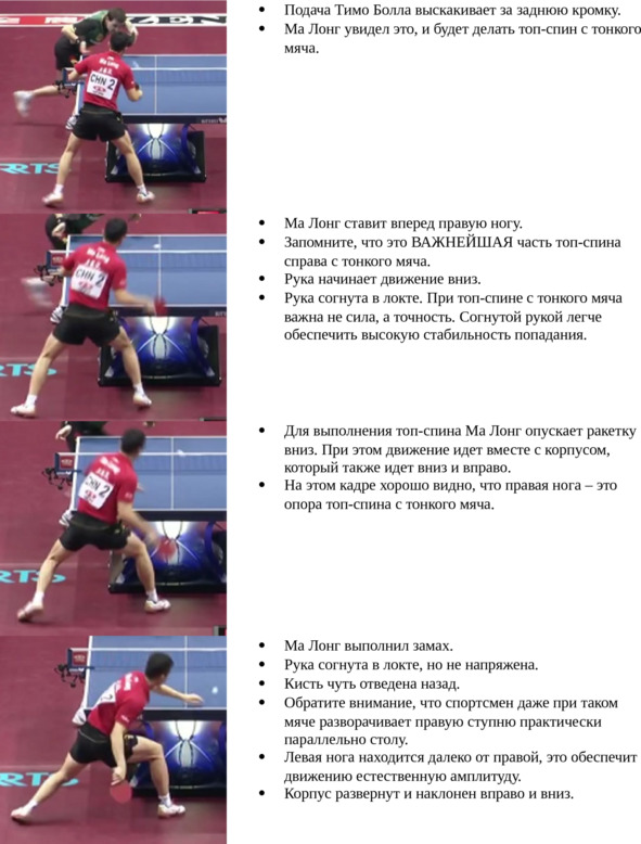 И читатель окажется прав. Многое из того, что мы сейчас обсудили (кроме тактических моментов), относится именно к топ-спину справа по вылетающему мячу из правой части стола.
