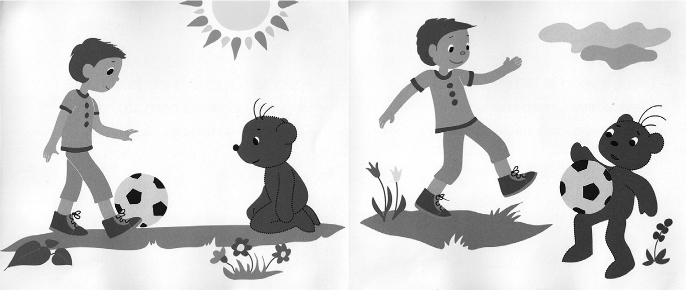 Ил. 2a и 2б. Две сцены из детской книжки «Борибон играет в футбол» (Boribon focizik, 2010) © Veronika Mar?k, Pagony kiad? Budapest