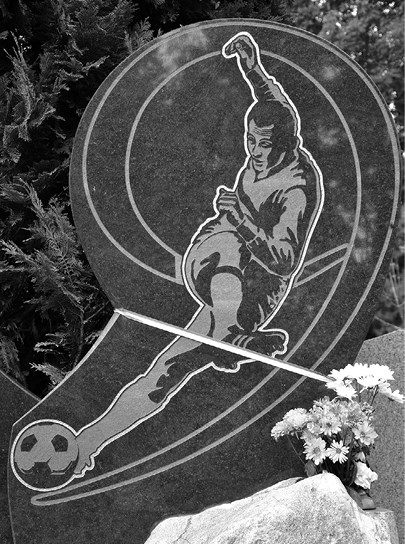 Дополнением к основополагающей общепонятности футбола и его правил в беллетристике часто служит масштаб, превышение среднего, перст божий в отношении некоторых игроков какой-то команды, лиги или какого-то (международного) турнира, да и в истории футбола вообще. Их статус отвечает уровню их собственных – не принимая на этот раз во внимание каких-то особых спортивных успехов – достижений, часто уровню cultural icon[88], под знаменем которого особенно любят собираться фанаты «их» команд и которые окружены почитанием, культом и – реже – представлены в литературе. Иконический статус футбола или футболиста отличает при этом способ (отсылки), при помощи которого некая общность (болельщики команды, эксперты на телевидении или в спортивной прессе, зрители какого-то турнира) обращается к игроку, уже ставшему героем этой отсылки. Это может простираться, как на примере Диего Армандо Марадонны (род. 1960) показал тот же Гебауэр[89], вплоть до сакрализации и таких форм почитания, которых в иное время удостаиваются только герои, святые и властители. При этом в качестве главной предпосылки должны быть налицо хотя бы какие-то особые достижения в области футбола, которые вовсе не неизбежным образом должны сопровождаться также исключительным и часто демонстрируемым спортивным мастерством (но весьма часто им сопровождаются). Забитых в играх голов при этом обычно недостаточно для того, чтобы некий игрок на деле удостоился иконического статуса, а его харизме футболиста отвечали маневры по идентификации некоей группы, которая и тогда еще почитает своего прозелита, когда он как футболист, добившийся иконического статуса, сам уже не только больше не играет активно, но, возможно, даже и тогда, когда его уже не будет среди нас. Проявления посмертной славы футболиста находят свой иконический эквивалент, разумеется, в съемках: в каких-то особых, нередко выигрышных сценах, по большей части – забитых голов, которые на онлайн-платформе «ютуб», в частности, можно обнаружить целыми массивами. В изобразительной памяти, однако, эта слава нередко приобретает дополнительную составляющую, которая отражается в сооружении и оформлении надгробий исключительных игроков, откуда и после их смерти распространяется слава о динамике (Флориан Альберт), мастерстве движения (Нандор Хидегкути) и национальном значении (Ференц Пушкаш, Дьюла Грошич) героев.