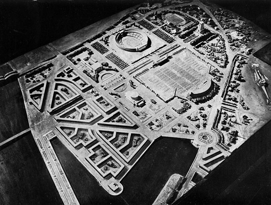Даже если разница в названиях не столь велика, она дает понять, что новому руководству государства на этом месте представлялось нечто гораздо большее, чем классический парк, который предназначен прежде всего обеспечивать отдых посетителей. Теперь и планы стали гораздо масштабнее: возвести большой стадион, как минимум на 25 000 зрителей, наряду с ипподромом, велодромом и разнообразными сооружениями для водных видов спорта; по соседству поместить постоянную площадку для фестивалей латышской песни, на которые традиционно с 1873 года каждые пять лет собирались бы певцы со всей страны, а также включить в общую концепцию комплекса строительство сооружений для проведения военных парадов, рабочих праздников или обращений президента к сотням тысяч людей.