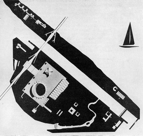 Исключительную по своему значению главу в истории проектирования спортивных сооружений в советской Риге представляет конкурс, проведенный в 1967 году Центральным советом спортивных обществ и организаций Латвийской ССР. Участникам было предложено представить свои проекты возведения стадиона олимпийского уровня и прочих значительных спортивных сооружений на двух островах Западной Двины в Риге[185]. Речь шла, во-первых, о Заячьем острове (латв. Za?u sala), на котором спустя почти двадцать лет расположились рижский телецентр и телебашня высотой 368,5 метров, а во-вторых – об острове Лутсаусгольм (латв. Lucavsala)[186], который и сегодня с точки зрения градостроителя стоит под паром.