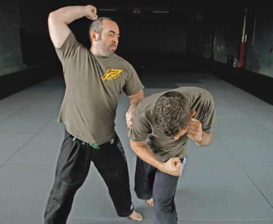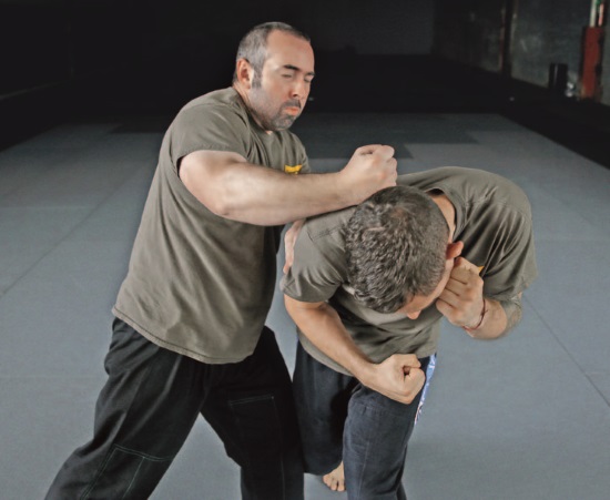 Это позволит проводить удары локтями и/или подобные атаки в лицо противника.