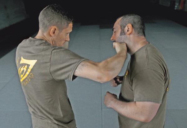 Если между руками противника есть расстояние, вы также можете пройти через среднюю линию защиты апперкотом (ударом снизу) локтем.