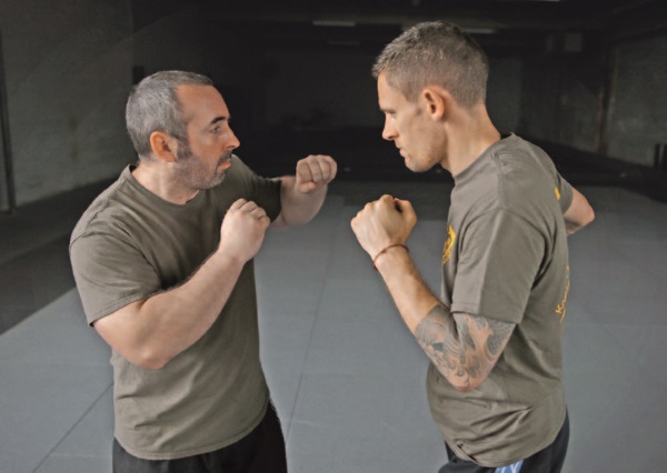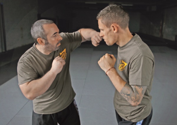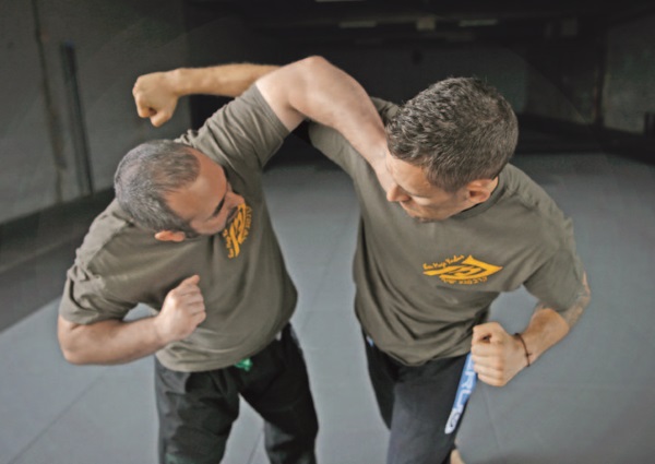 Один из основополагающих принципов крав-мага – атака должна следовать за защитой при первой же возможности. Один из способов претворить его в жизнь – сочетать нападение с оборонительными действиями, такими как использование одного и того же удара кулаком, чтобы атаковать противника и одновременно защищаться от его ударов. Эта техника хорошо работает против круговых ударов уже во время боя. Если вас начали избивать и застали этим врасплох, возобладают природные инстинкты и вы займете круговую оборону, т.е. перестанете уклоняться и поднимите руки вверх для прикрытия.