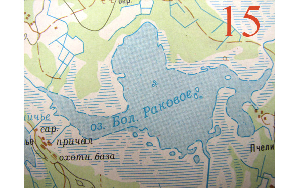 Озеро из колоды. Какие параметры, прежде всего, интересуют рыболова при разглядывании карточного озера? Это – размеры, форма, изрезанность береговой линии, характер берега на различных участках, населенность и подъезды, местоположение островов, камней и мелей, распределение глубин, места произрастания водной растительности. Конечно, хотелось бы узнать и грунт дна, но указатели этого параметра на туристических картах можно увидеть крайне редко. Мне, например, встретились они только на замечательных картах набора «По лесам и озерам Карельского» (СПб, «Аэрогеодезия», 1991—1999 гг.).