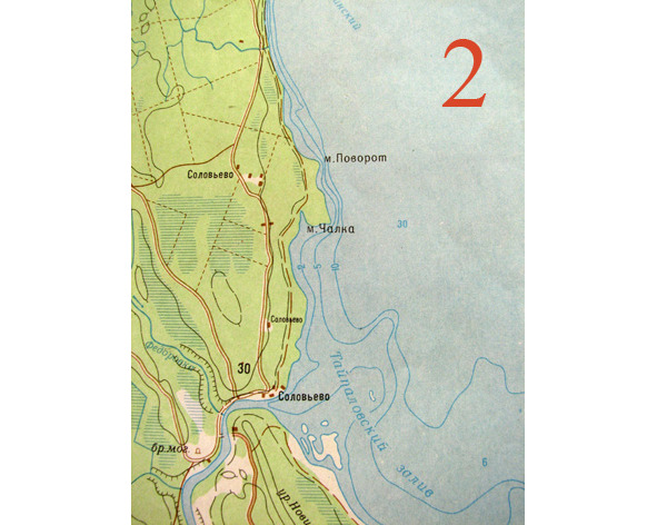 Начнем с изображения глубин на озерах. Условными обозначениями преобладающих глубин являются изобаты и числовые отметки. Изобаты – это тонкие линии на изображении водной поверхности, соединяющие точки с равными глубинами (фото 1).