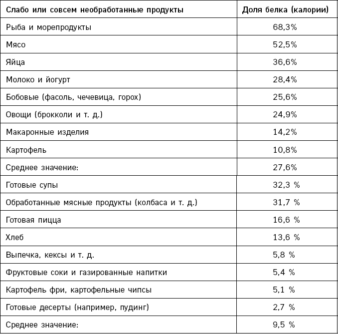 Подведем краткий промежуточный итог: избегайте белковых приманок и вообще всех продуктов питания, которые были придуманы с целью обхитрить ваши инстинкты. Если говорить простым языком, практически откажитесь от промышленной еды в любом ее виде. Хотя здесь не всегда имеют место белковые приманки, но в пищевых продуктах, производимых промышленным способом, систематически разбавляют белок (рис. 1.4). Ешьте настоящую, натуральную пищу. Чем естественнее, тем лучше. Или, как справедливо заметил американский журналист Майкл Поллан (Michael Pollan), «не ешьте ничего из того, что ваша бабушка не считает едой»[34].