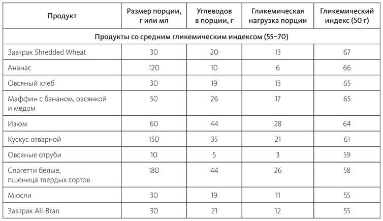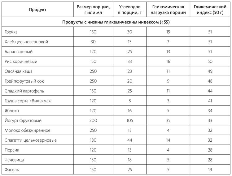 Низкая гликемическая нагрузка для порции углеводов – до 10. Средние показатели – в пределах 11–19, а высокие – выше 20.