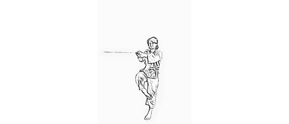 Стойка на одной ноге. Самая статичная стойка. Опорой является одна нога, устойчивости которой придается особое значение. Колено опорной ноги слегка согнуто. «Пустая» нога играет роль реверса для сохранения равновесия. С другой стороны, она выполняет защитные функции. При отработке стойки держите позвоночник прямо.