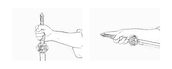 Меч-цзянь является одноручным наступательным оружием. Хват меча осуществляется жестко одной рукой. Кулак с предплечьем находятся в одной плоскости. Жесткость хвата не должна создавать помехи к маневренности оружия. Это возможно при мягких плечах и подвижных суставах.