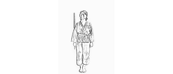 Стойка приветствия. Ноги вместе, стопы внутренней стороной прижаты друг к другу и плотно стоят на поверхности. Колени слегка согнуты. Позвоночник занимает вертикальное положение. Плечи опущены. Правильная стойка создает иллюзию «одной ноги». При отработке стойки следует уделить внимание положению центра тяжести. Находясь в устойчивой позиции, перенесите вес тела на правую ногу, на левую ногу. Перемещение центра тяжести на одну ногу позволяет при внешней стабильности сохранять мобильность стойки, так как одна нога («пустая») готова мгновенно переместиться в другое положение. «Играя» с центром тяжести всегда следите за плотно стоящими на земле стопами, вертикальностью позвоночника и устойчивостью позиции.