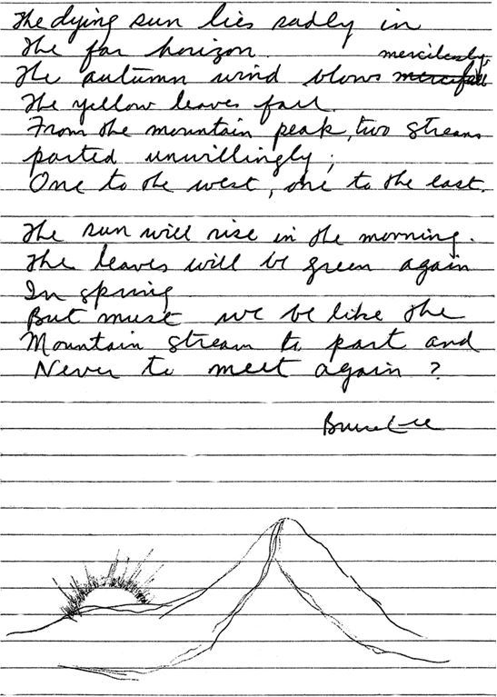 Источник: рукописное стихотворение «Солнце, умирая…» из архива Брюса Ли.
