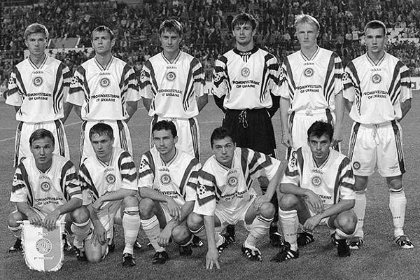 Киевское «Динамо» перед матчем в Эйндховене. Верхний ряд (слева — направо): Юрий Максимов, Александр Головко, Александр Хацкевич, Александр Шовковский, Андрей Гусин, Андрей Шевченко. Нижний ряд: Юрий Калитвинцев, Сергей Ребров, Владислав Ващук, Виталий Косовский, Юрий Дмитрулин.
