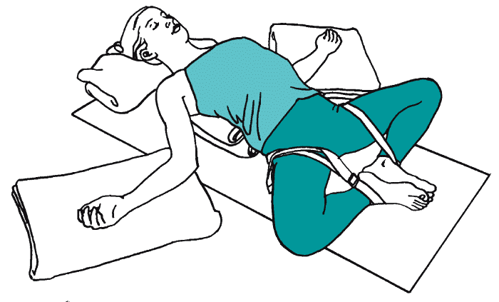Рис. 31А. ПОЗА СВЯЗАННОГО УГЛА В ПОЛОЖЕНИИ ЛЕЖА С ОПОРОЙ И БОЛСТЕРОМ (c. 95)