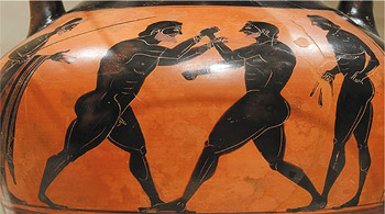 Это если о мифах. Историки же, основываясь на реальном и осязаемом, подтвердили значительную роль бокса в укладе Древней Греции фактами. Так, о кулачных поединках писал Гомер в своей «Илиаде». А философ Никандрос напутствовал пятикратного чемпиона по кулачному бою Филиноса словами: «Ты должен хорошо понимать, Филинос, сын мой, что для победы в Олимпии недостаточно сильного тела, если оно не управляется здравым и зрелым умом. Упражнения развивают тело, музыка развивает душу, а знания развивают разум. Именно так создается красота и гармония».