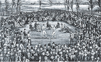 Важным событием «эры голых кулаков» (несмотря на эволюцию правил, до внедрения перчаток тогда ещё не дошли) стал первый поединок за звание чемпиона мира между чемпионом Англии Томом Сэйерсом и чемпионом США Джоном Хинэном. В 1960 году бойцы на протяжении 2 часов 20 минут что есть мочи определяли сильнейшего, но все их старания так и не увенчались успехом. Из-за вмешательства полиции бой был прерван после 42 раунда, а поскольку победитель определялся только нокаутом, пришлось объявить ничью и вручить чемпионские пояса обоим боксёрам, которые впоследствии стали добрыми друзьями.