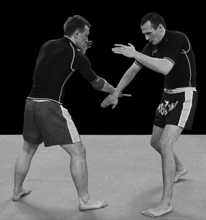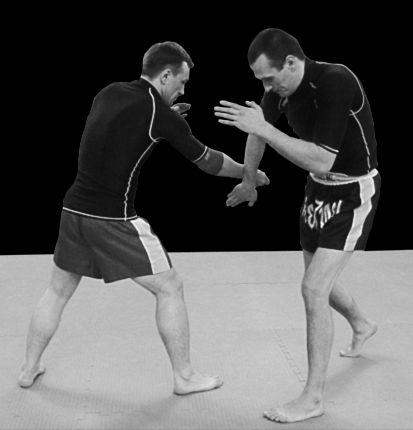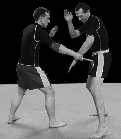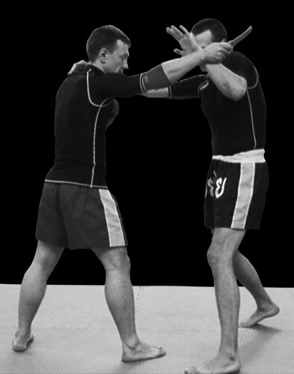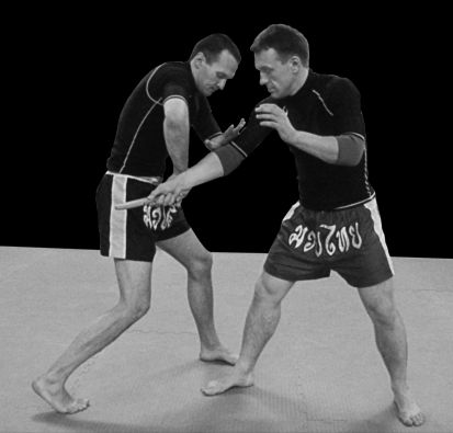 Еще одной, уже упомянутой выше, проблемой при схватке с использованием ножа является его обнаружение. Очень часто агрессор прячет нож до начала атаки, так что жертва понимает, что ее бьют именно ножом, только получив несколько ударов, которые могут оказаться фатальными. Здесь можно посоветовать быть очень внимательным при зарождающихся конфликтах, обращая особое внимание на руки противника. Нож очень часто можно прятать за предплечьем так, что будет видно только выпрямленную руку со сжатым кулаком. Если ваш противник прячет руки, держит сжатыми кулаки, не жестикулирует при разговоре, это может косвенно указывать на наличие у него в руках какого-то предмета, чаще всего именно ножа. В этом случае нужно сразу разрывать дистанцию и не давать противнику ее сократить, действуя так, как в случае, когда вы работаете против ножа. Наоборот, если вы видите ладони противника или он активно жестикулирует во время разговора либо пытается идти в захват, то, скорее всего, противник чист, но все равно нельзя допускать, чтобы он лез в карман, за пазуху или в любой другой тайник, мгновенно жестко атакуя и блокируя свободный ход рук противника.
