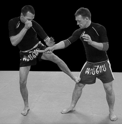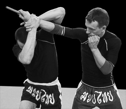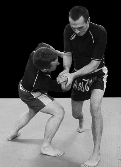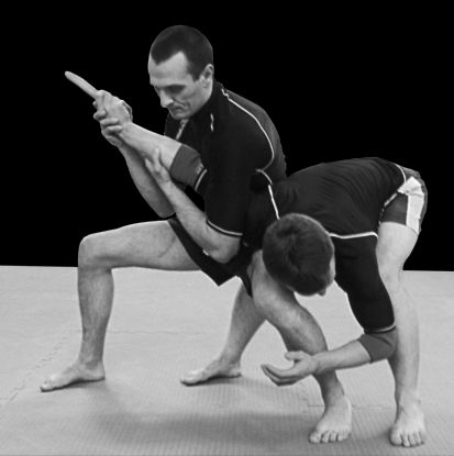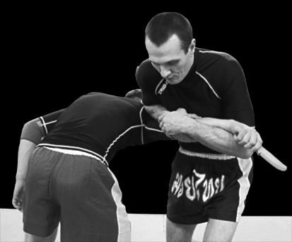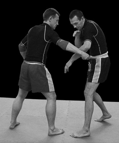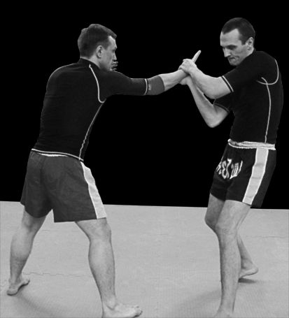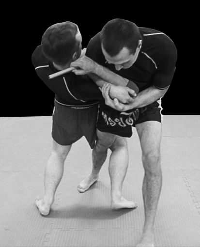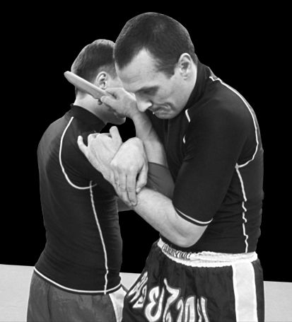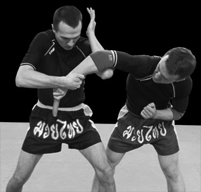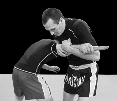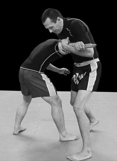 Нож – это очень опасное оружие рукопашного боя. Хорошо владеющий ножом боец почти не оставит шансов безоружному противнику в рукопашной схватке, но даже относительно слабый противник, вооруженный ножом или другим подобным оружием, представляет очень большую опасность для любого бойца. Многие боевые системы имеют в своем арсенале приемы работы против ножа, но очень немногие учат правильно принимать вооруженную руку противника. Правильный прием вооруженной руки противника с ее последующим контролем – это 75 процентов успеха. Поймать руку подготовленного ножевика во время удара – это почти фантастика, удары ножом наносятся очень быстро, и они легко меняют траекторию, огибая жесткие блоки, по пути обрезая блокирующие руки. Но все же если вы сумеете заранее определить траекторию наносимого удара, то шансы заблокировать вооруженную руку резко возрастут. Главное, не пытаться поймать вооруженную руку кистью. Не успеете и не удержите! Все захваты происходят после сбивов, тормозящих руку противника, а последующее удержание вооруженной руки осуществляется с подключением всего тела. Если вам удалось поймать и застопорить вооруженную руку, то во что бы то ни стало держите ее и грызите зубами, бейте головой, пинайте ногами вашего врага, не отпуская его вооруженной руки до тех пор, пока он не будет полностью деморализован и не выпустит свое оружие из рук.