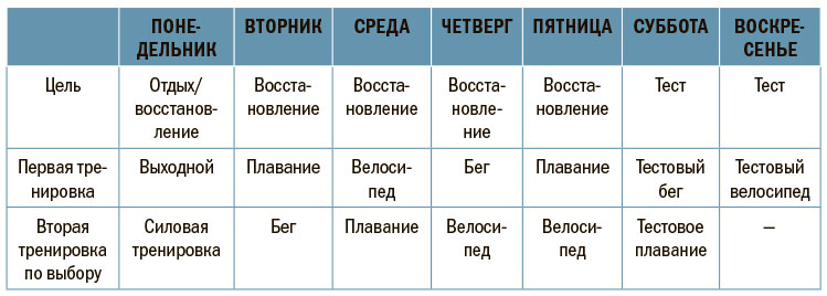 Обратите внимание, что в табл. 11.2 два последних дня недели отдыха и восстановления отводятся на тестирование. Самое время оценить прогресс, потому что сейчас вы отдохнули и готовы двигаться дальше. Количество тестовых упражнений и способ анализа вашего состояния полностью зависят от вас. Нетрудно, например, оценить показатели по всем трем видам спорта, как предложено в табл. 11.2. Или рассмотреть только один или два из них. Может получиться, что в конце некоторых перерывов вы вообще решите не проводить тестов, а сразу приступить к серьезным тренировкам. Что касается того, какие именно навыки тестировать в каждом виде спорта, смотрите приложение Б, приложение В и приложение Г.