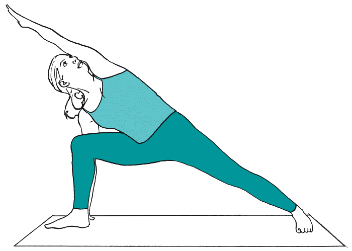 Рекомендации. Не практикуйте эту асану при гипертонии, в первую неделю менструального цикла, а также в период прохождения лучевой или химиотерапии. При проблемах с сердцем и после операции на молочной железе работайте у стены и входите в асану с верхней рукой на талии. Во время беременности работайте у стены, положив перед стопой блок (но избегайте этой асаны при гипертонии и токсикозе). Молодым мамам: не практикуйте позу вытянутого бокового угла в первые 4 месяца после родов.