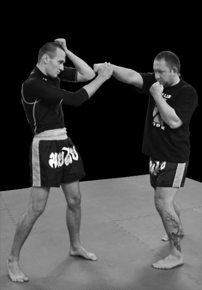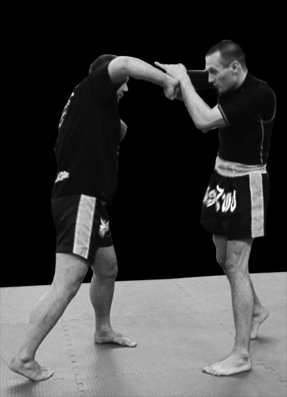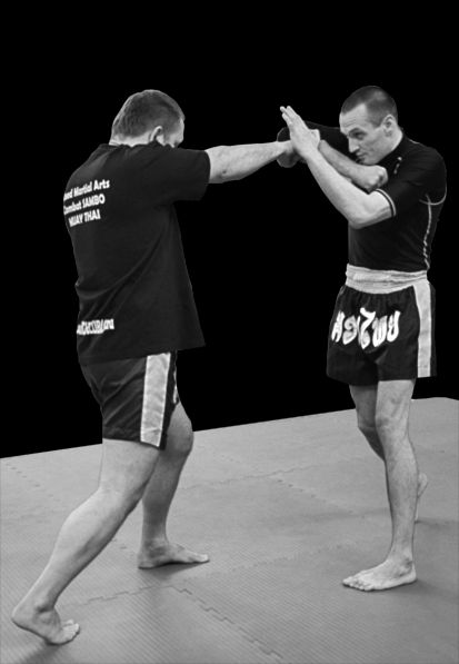 Очень интересной и весьма полезной является защита травмирующими подставками. Подобные техники защиты не характерны для спортивных единоборств и призваны разбить атакующие конечности противника. Лучше всего это сделать, «посадив» атакующие кулак, или голень противника на свой локоть. Несмотря на кажущуюся трудность такого действия, выполнить его вполне возможно, важно только помнить, что такая защита годится против мощных размашистых ударов и атаки навалом – когда противник пытается задавить вас градом ударов, но плохо подходит против скоростных, раздергивающих одиночных ударов.