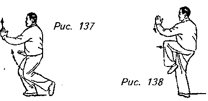 Движение 4: Делайте подобно движению 4 упражнения 16, заменяя соответственно на противоположные руку и ногу (рис. 137, 138).