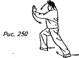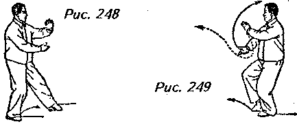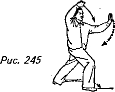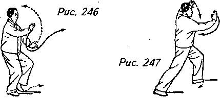 “шаг вдоль кромки радуги”. При этом поднимите левую руку по кривой перед лицом, чтобы она оказалась над головой с ладонью, направленной под углом вверх, и вытолкните правую руку вперед от середины груди по кривой, на уровне носа, ладонью наружу. Взгляд должен при этом быть направлен на правую ладонь (рис. 246, 247).