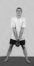 И. п.: стоя, ноги шире плеч, наклон вперед, гири на прямых руках между ног, спина прямая.