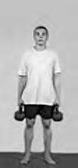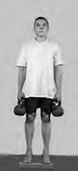 И. п.: стоя на полступни на доске высотой 5 см, гири в выпрямленных руках вдоль туловища.