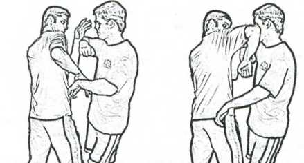 Рис. 4.21. «Дюймовый» удар локтем в ситуации клинча.