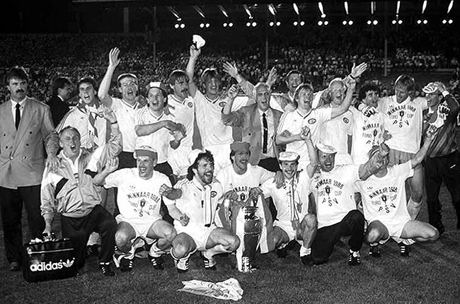 Как не сказать еще об одной пятерке. Пятеро игроков ПСВ вскоре отправились в ФРГ в составе сборной Нидерландов и увенчали невероятный сезон — чемпионство, Кубок страны, Кубок чемпионов — четвертым трофеем, победой на чемпионате Европы! Это вратарь Ханс ван Брёкелен, опорник Берри «Турбо» ван Арле (в сборной игравший правого бека), центральный защитник Рональд Куман (он образовал великолепную пару с Райкардом), форвард Вим Кифт (без его победного гола сборной Ирландии на 82-й минуте, когда мяч от кочки заскочил в ворота, «оранжевые» из группы не вышли бы) и правый полузащитник Жеральд Ваненбург (еще один сын отца из Суринама, как-то незаметно отыграл все матчи). Вывод? ПСВ победил по заслугам и совершенно реально был на тот момент сильнейшей клубной командой Европы.