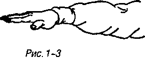 Четыре пальца сложены вместе и выпрямлены, большой палец плотно подогнут к внутреннему ребру кисти, запястье выпрямлено (рис. 1-3).