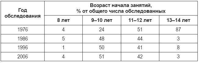 6. Общая тенденция «омоложения» спорта коснулась и гандбола. Если в 70-е годы ХХ в. средний возраст начала занятий составлял 14 лет, то теперь он снизился до 9-12 лет, а иногда и до 7 лет (табл. 16).