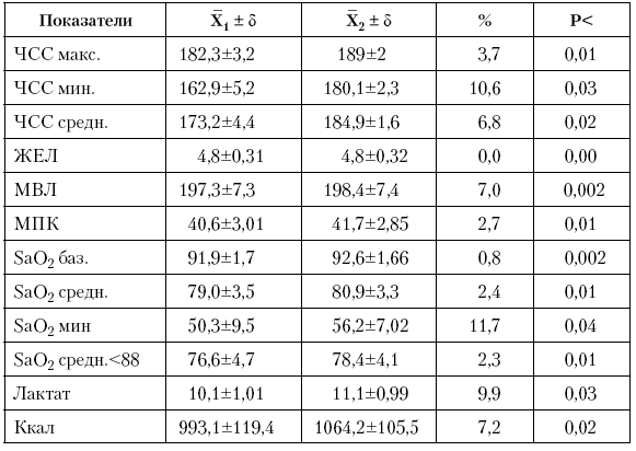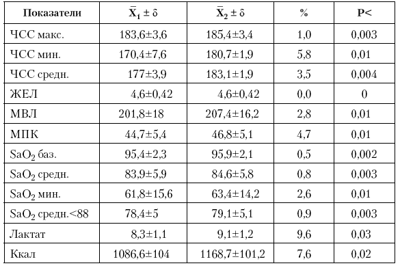 Показатель максимальной вентиляции легких увеличился на 7,8 %, что привело к увеличению максимального потребления кислорода на 11,3 %.