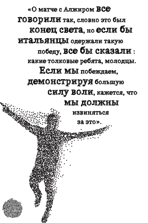Столкновение миров. Игра с Алжиром обозначила линию раздела между заоблачными ожиданиями и куда менее яркой действительностью на поле. Die Welt почувствовала, что только что кампания сборной Германии на мундиале пережила знаменательный момент, что она достигла поворотной точки. Но куда этот поворот заведет команду, они не знали. «Эта победа в дополнительное время предположительно войдет в историю DFB позже, – писала газета для среднего класса, – либо превознесенной до небес, как искра, давшая пламя победы на Чемпионате мира, либо демонизированной, ставшей символом предопределенной неудачи, предсказанием грядущего конца эры Лёва».