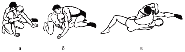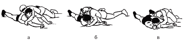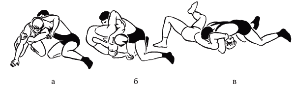Рис. 1.50. Откат набегая с захватом шеи из-под плеча и другой руки снизу
