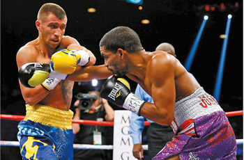 Василий Ломаченко перехватывает атаку Гамалиэра Родригеса
