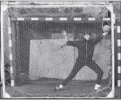 Рис. 86. Применение наклонного батута для обучения вратаря