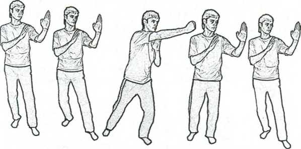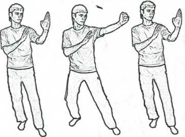 Рис. 3.20. Удар передней рукой с шагом вправо
