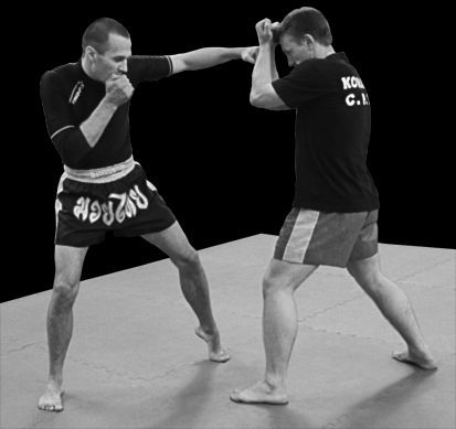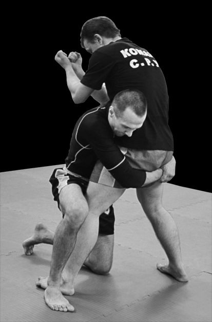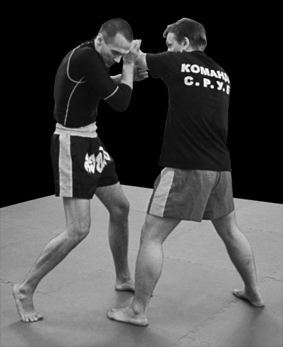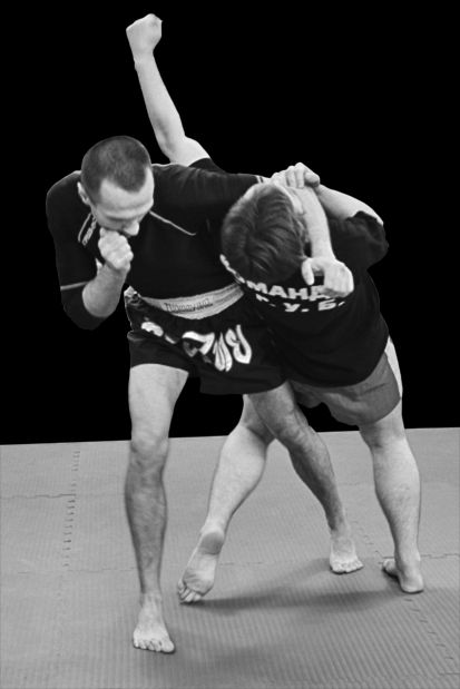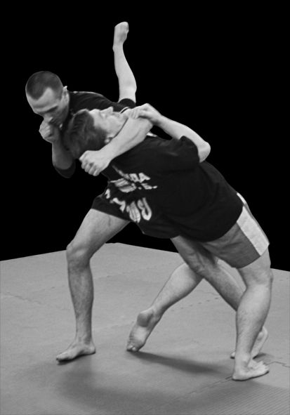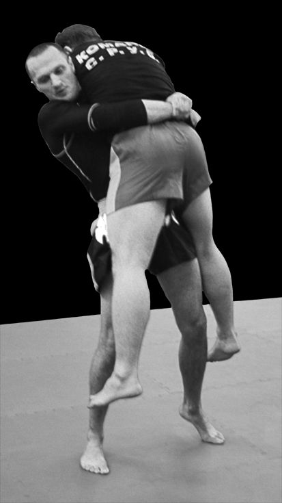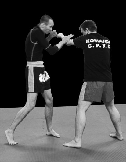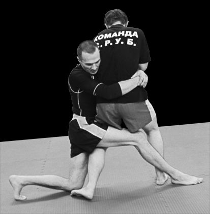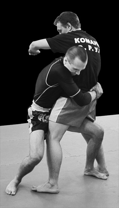 Сами по себе броски являются весьма сложным техническим действием, и на их отработку уходит значительное количество времени. Так как мы рассматриваем борьбу больше как дополнение к ударной технике, то для нас достаточно научиться сносно выполнять всего несколько относительно простых бросков. К слову сказать, амплитудные и чистые броски в смешанном бою проходят чрезвычайно редко, особенно если оба противника знакомы с техникой борьбы, и обычно в подобных схватках броски заменяет простое сваливание в партер, где потом уже и разворачиваются основные боевые действия. Именно поэтому в рамках данной работы, рассчитанной прежде всего на бойцов, больше тяготеющих к ударной технике, технике бросков будет уделено немного внимания, и рассматриваться они будут как ответ на ударные действия противника.