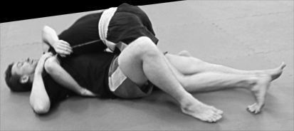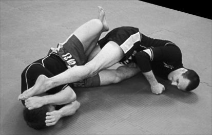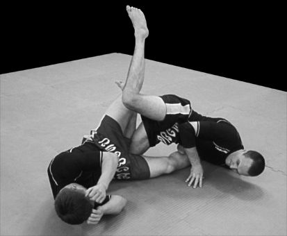 6. Вы лежите на спине, и противник пытается атаковать вас ударом ноги по ребрам. Быстро поднимите корпус и, заблокировав бьющую ногу жесткой подставкой локтя в бедро, другой рукой подхватите эту же ногу за пятку (рис. 516). Наваливаясь всем корпусом, дерните ногу под себя, опрокидывая своего противника, и тотчас нанесите ему удар ногой в голову, после чего проведите ущемление ахилла (рис. 517—520).