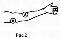 На руке расположены четыре зоны, которые могут быть эффективно атакованы. Первая — на верхней части предплечья, вблизи локтевого сустава (рис. 2,А). Вторая — в середине локтевого сустава с внутренней стороны. Надавливание на эту зону вызывает боль и паралич.