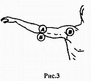 Третья зона, которая может быть атакована, находится в нижней части, возле локтевого сустава (рис. 3,Б).