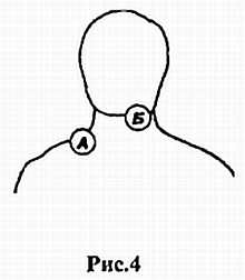 Вторая зона расположена на задней стороне шеи (рис. 4,Б). Воздействие на нее может вызвать потерю сознания вследствие болевого шока.