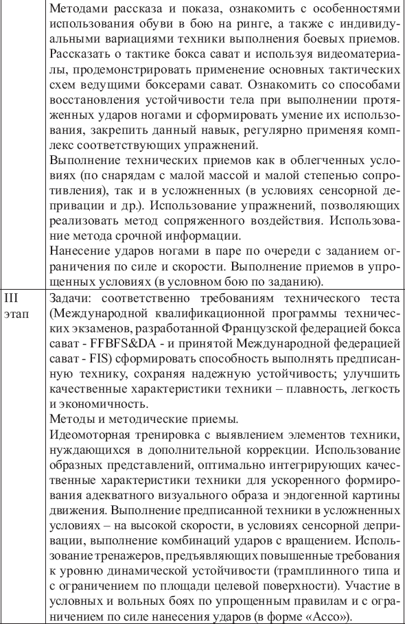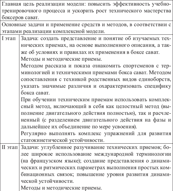 Основные этапы реализации комплексной модели технической подготовки в боксе сават