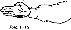 Четыре пальца сложены вместе и выпрямлены, большой палец плотно подогнут к внутреннему ребру кисти, запястье выпрямлено (рис. 1-10).