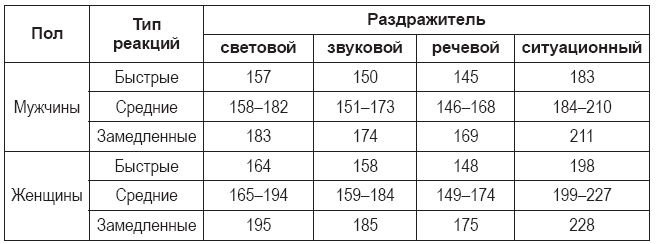 Латентный период простой двигательной реакции, интегрально отражающий функциональную активность центральной нервной системы, для каждого человека генетически запрограммирован и является стабильным показателем на протяжении определенного возрастного периода. При этом возрастное развитие идет неравномерно, но с возрастом время реакции сокращается.